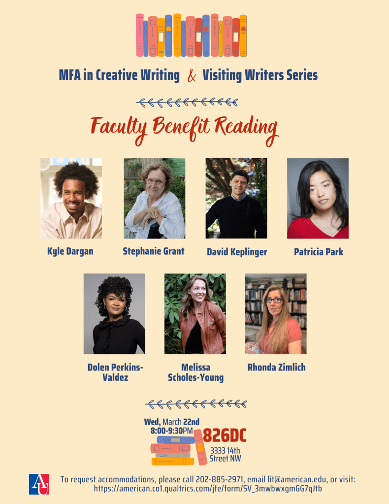 March 22, 2023, Reading with American University MFA Faculty Benefit Reading for DC 826DC, in Washington, DC