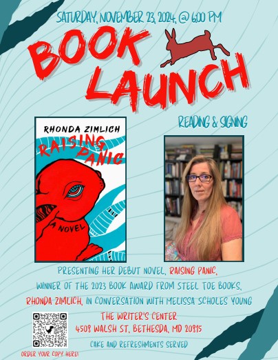 Saturday, November 23, 2024, Book Launch, reading, and signing, for Raising Panic, at The Writer’s Center in Bethesda, MD. More here: