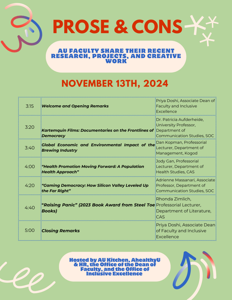 Raising Panic, AU’s U-Club Faculty Reading Series, November 13, 2024, American University, Washington DC