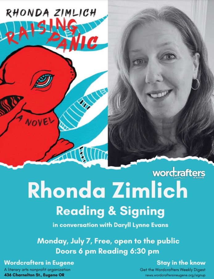 Raising Panic Reading and signing, in conversation with Daryll Lynne Evans at WordCrafters Eugene, July 7, 2025, Eugene, OR